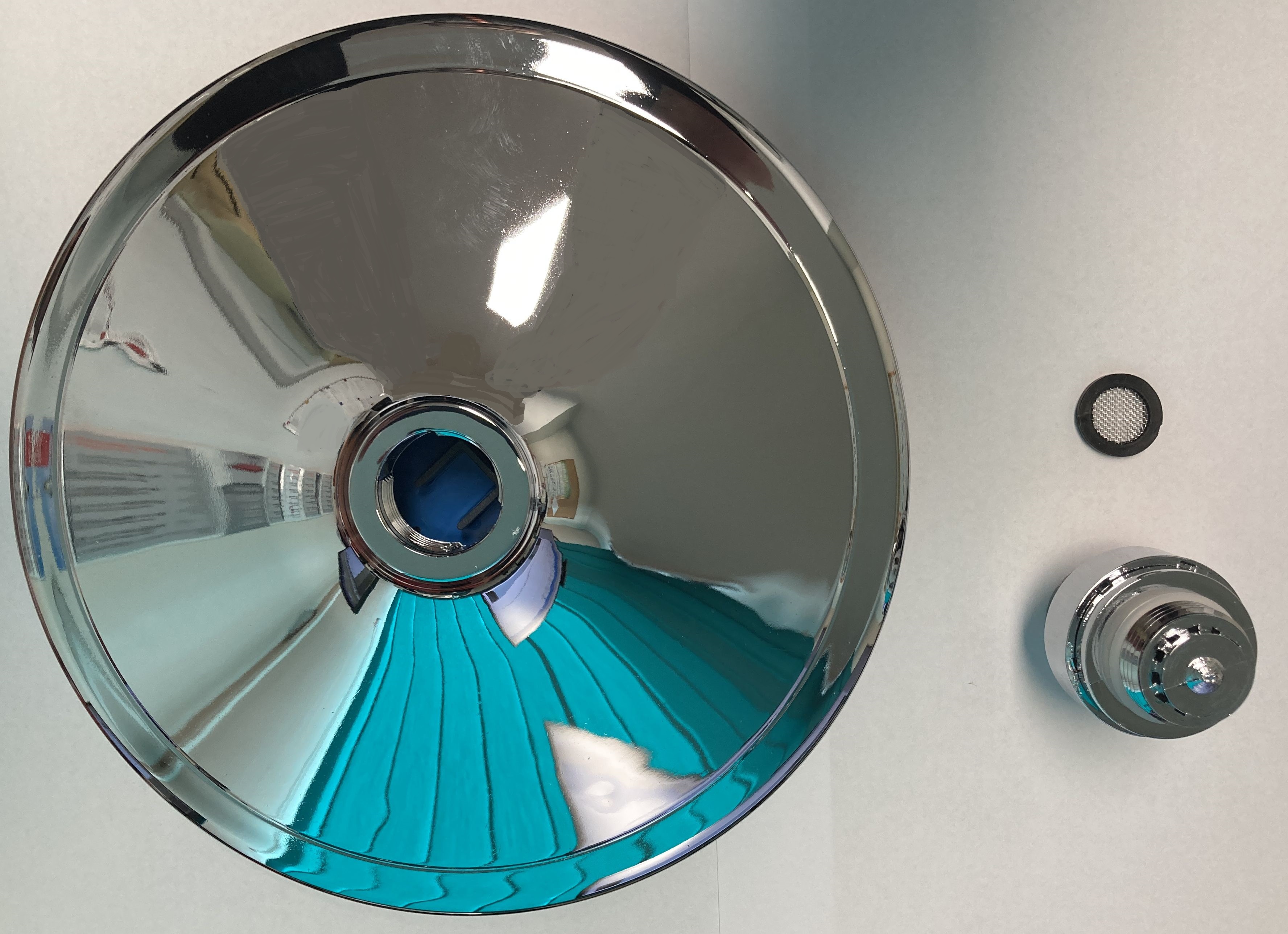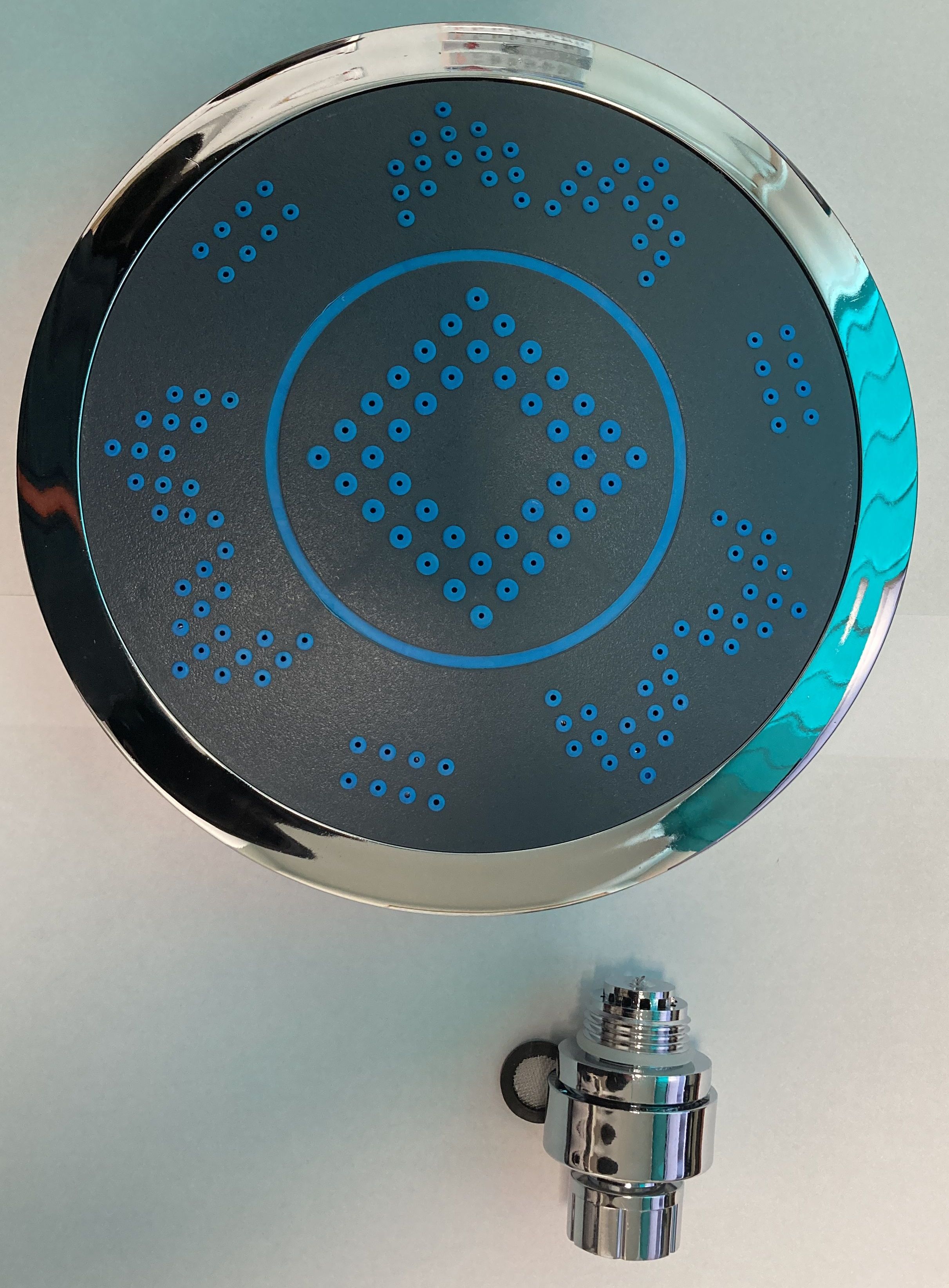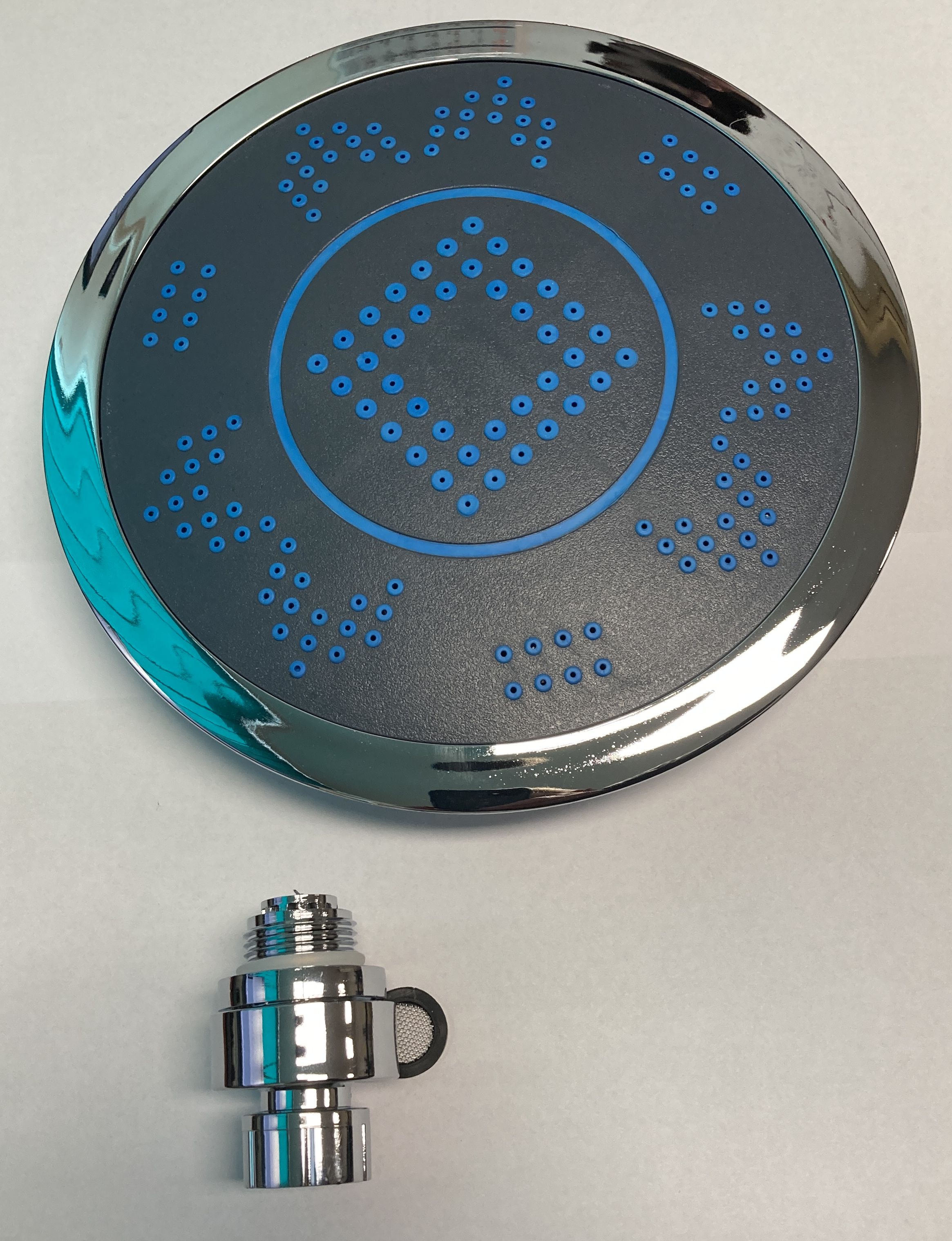 Fekete, kék pöttyös, króm szegéllyel. Külső átmérő: 20 cm. Csomagolás része a csuklós csatlakozó. Sanimix kabin típus: 22.181 és 22.126 Primo. Figyelem! Nem alkalmas a 22.180 kabinhoz a csatlakozó menetemelkedésének eltérése miatt!