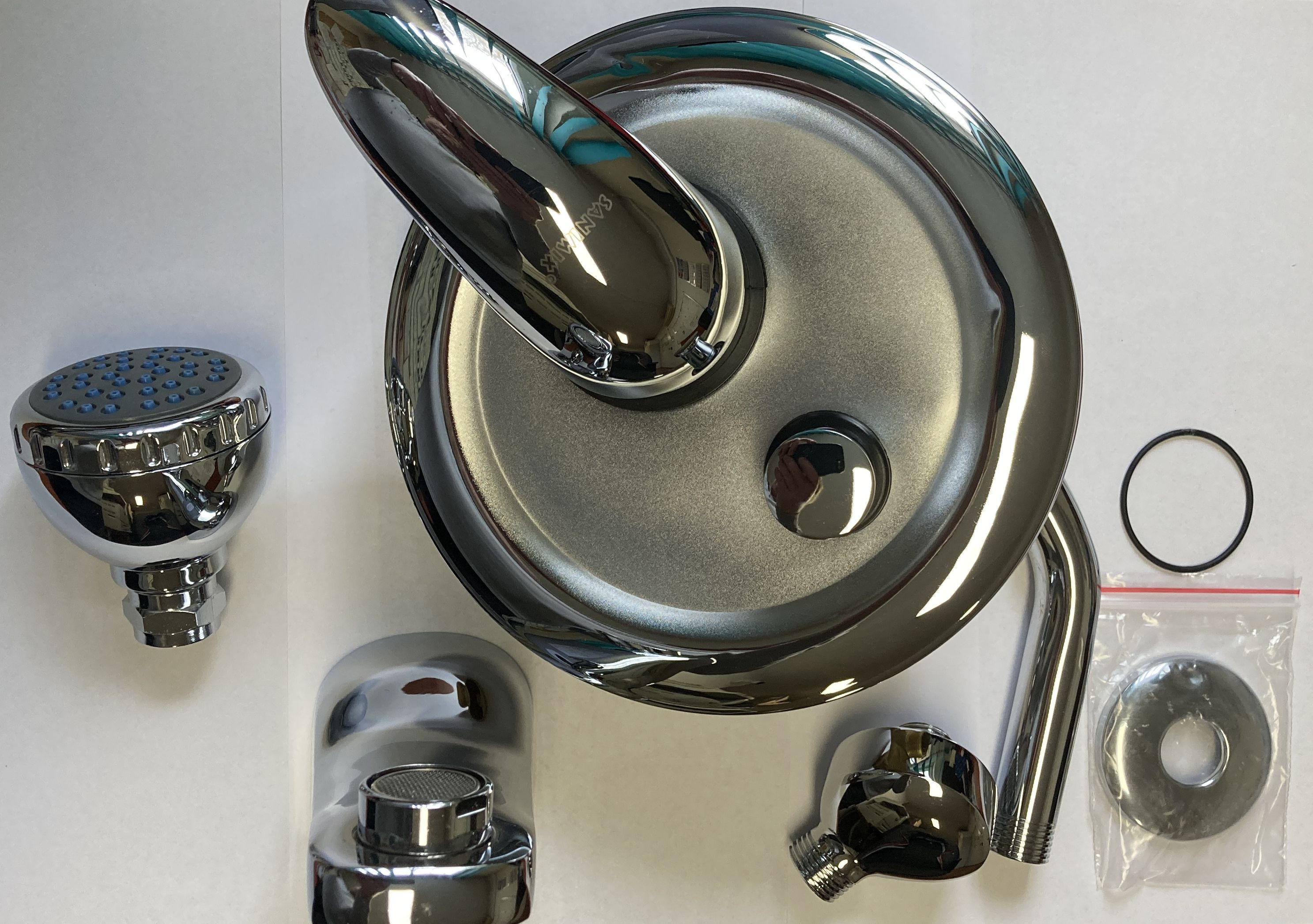 A komplett szett tartalma: - felső esőztető zuhany - kétállású beépített vizes vezérlő - kádtöltő - kézi zuhany csatlakozó - takarórózsa - tömítések Műszaki adatok: Maximális üzemi hőmérséklet: 70C Kerámiabetétes elzáróegység, 35mm átmérővel. 8 mikronos krómozással, fém karral. Vízátersztő képesség 21 l/perc fölött.