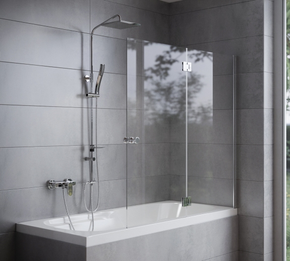 140x120 cm 6mm vastag edzett víztiszta biztonsági üvegek Krómozott fém zsanérok Polírozott, dupla alumínium profil Fém fogantyú Jobbos-balos szerelhetőség Az üvegek alján és a üvegek között vízzáró profil.