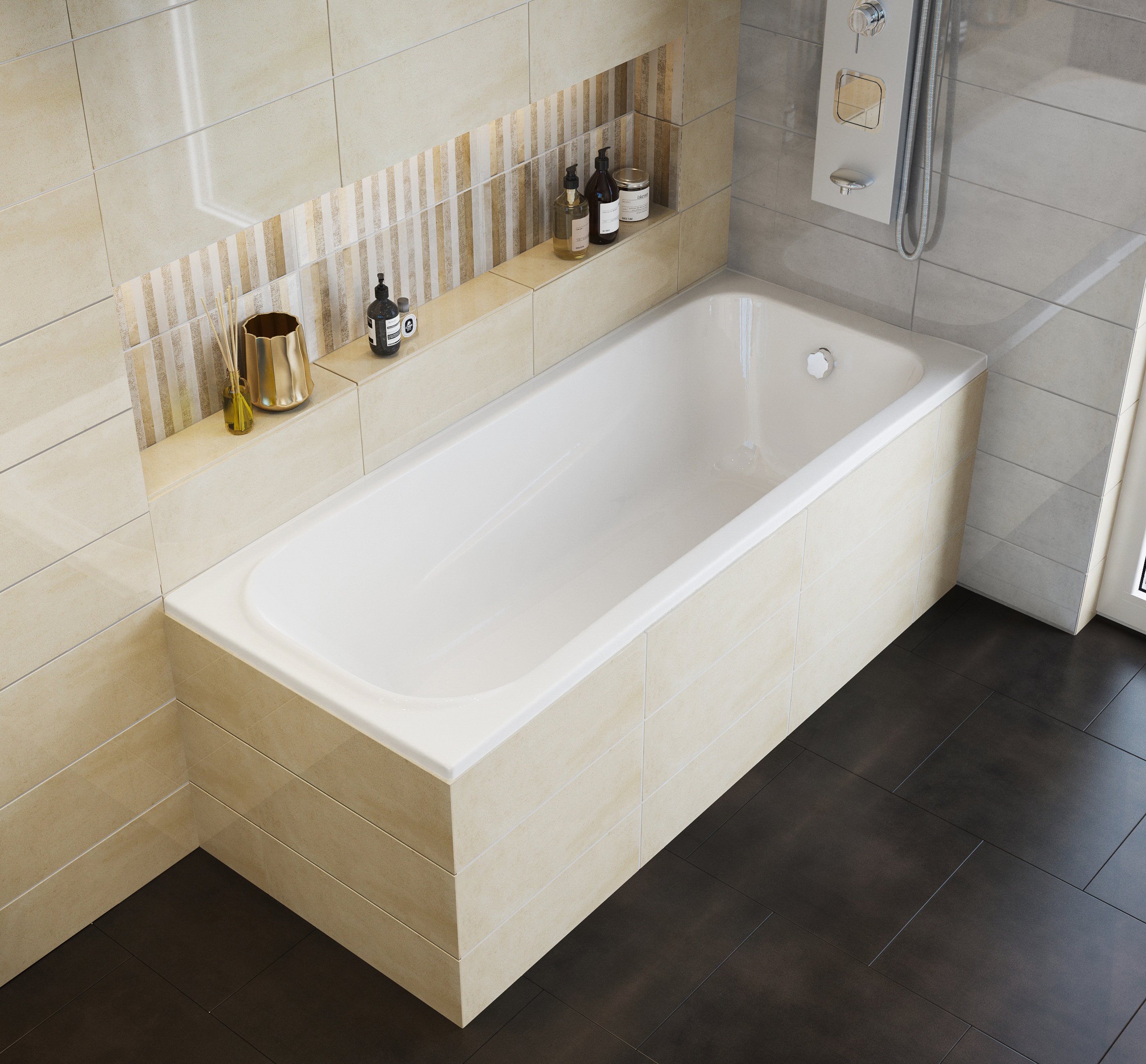 OCEANO Akril egyenes fürdőkád 170x75x40 cm 4,5 mm vastag akril lemezből gyártott, 3 rétegű üvegszál erősítéssel és műgyanta statikai megerősítéssel. Extra merevítés a kád aljában.