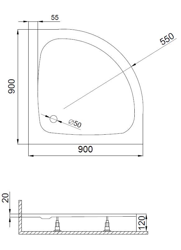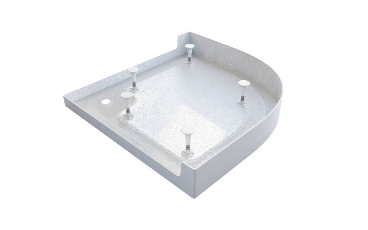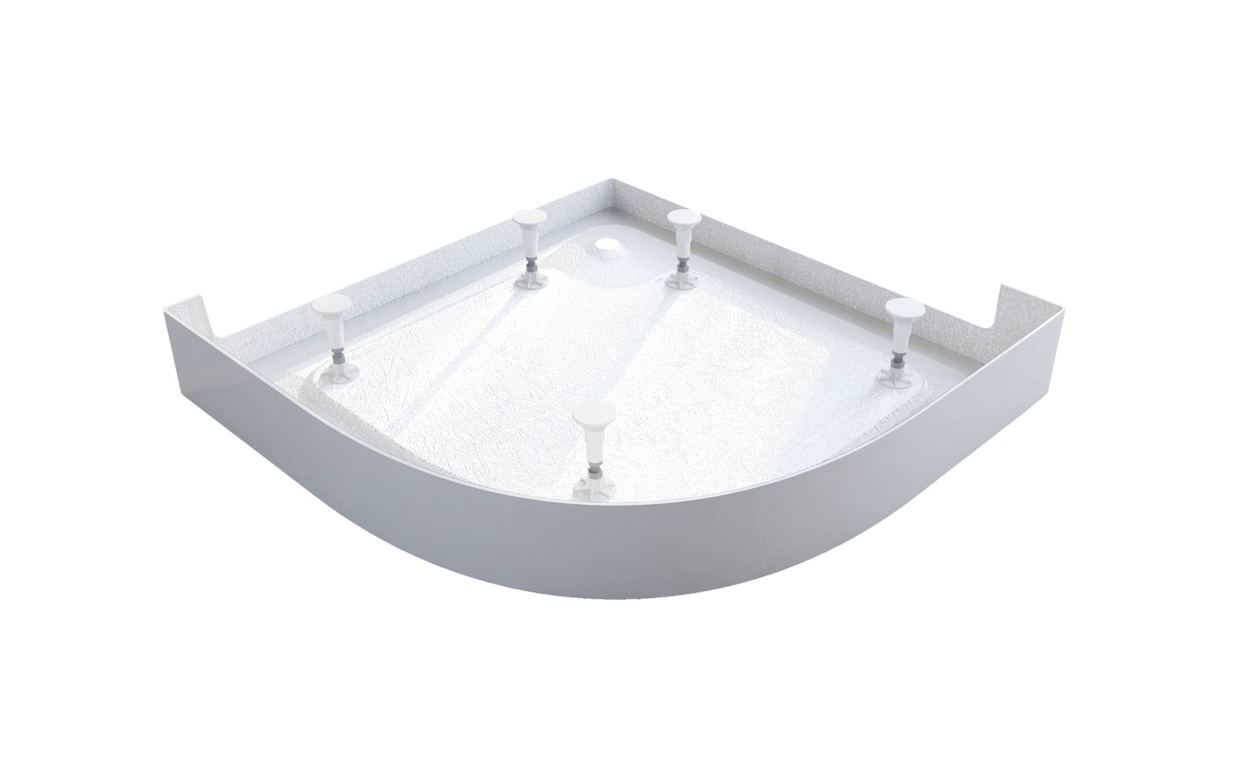 Negyedköríves, üvegszál erősítésű, alacsony akril tálca, integrált merevítéssel, szintező lábakkal és fali tartó konzollal. Kialakításának köszönhetően pontos állíthatóság és stabil , megbízható használat. 90x90x12 cm Szifon nem tartozék, külön rendelhető. Szifon átmérő 50mm. EU gyártmány