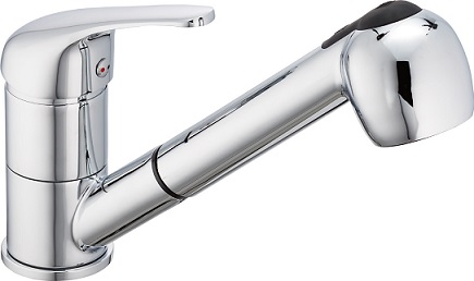 Álló mosogató csaptelep kihúzható zuhany fejjel Műszaki adatok: Maximális üzemi hőmérséklet 70C Kerámiabetétes elzáróegység, 40mm átmérővel 8 mikronos krómozással, fém karral 3/8-os 30 cm-es bekötőcsővel Vízáteresztő képesség 13l/perc fölött