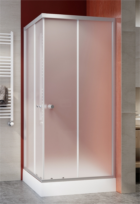 Szögletes zuhanykabin, króm, tálca nélkül 80*80*185